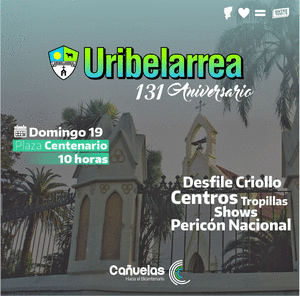 El próximo domingo 19 tendrán lugar los festejos por el 131º Aniversario de la localidad de Uribelarrea.