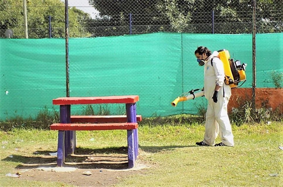 Los operarios de la empresa de control de plagas iniciaron las tareas encomendadas por el municipio para prevenir la reproducción del mosquito del dengue, en escuelas, jardines de infantes, plazas, parques y lugares de esparcimiento públicos.